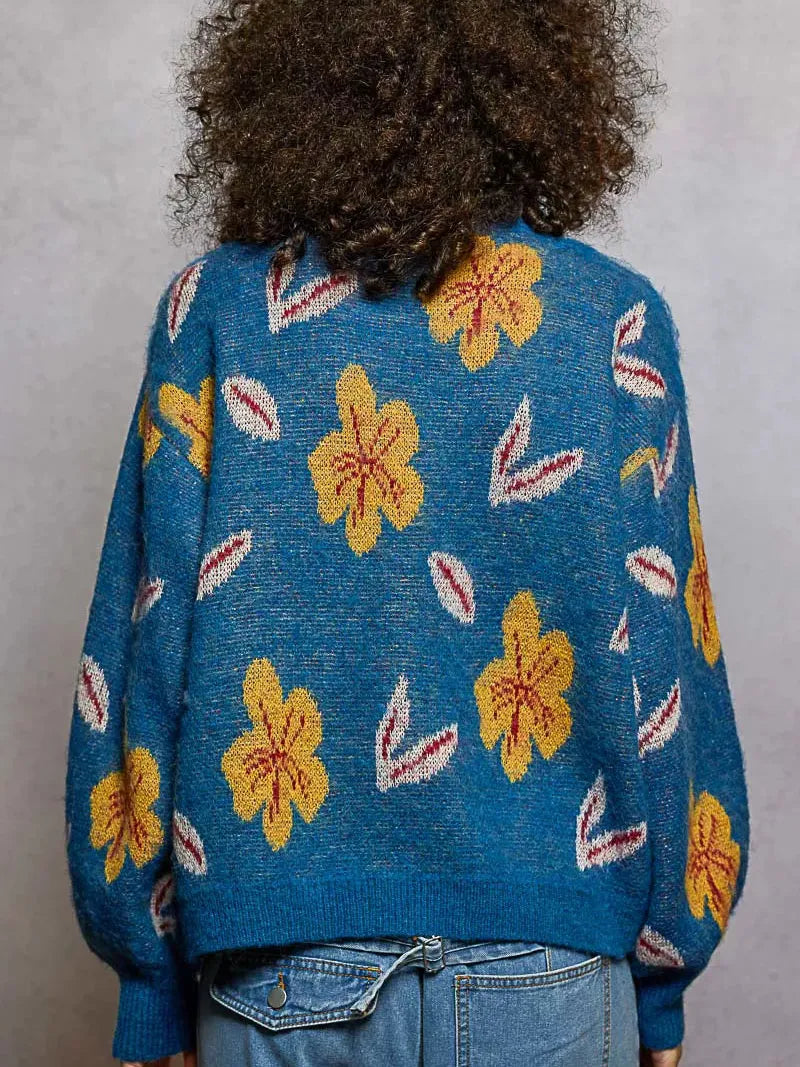 Wrap yourself in cozy sophistication with the Soft Leaf Story Round Neck Leaf Print Balloon Sleeve Sweater! Crafted in a dreamy lapis blue hue, this mohair-blend knit features delicate outseam details and a subtle pointed floral pattern reminiscent of soft, drifting leaves. The voluminous balloon sleeves add a romantic touch, while the relaxed fit keeps things effortlessly chic. Perfect for cozy coffee dates or elevated evenings, this sweater tells a story of comfort, charm, and timeless femininity.