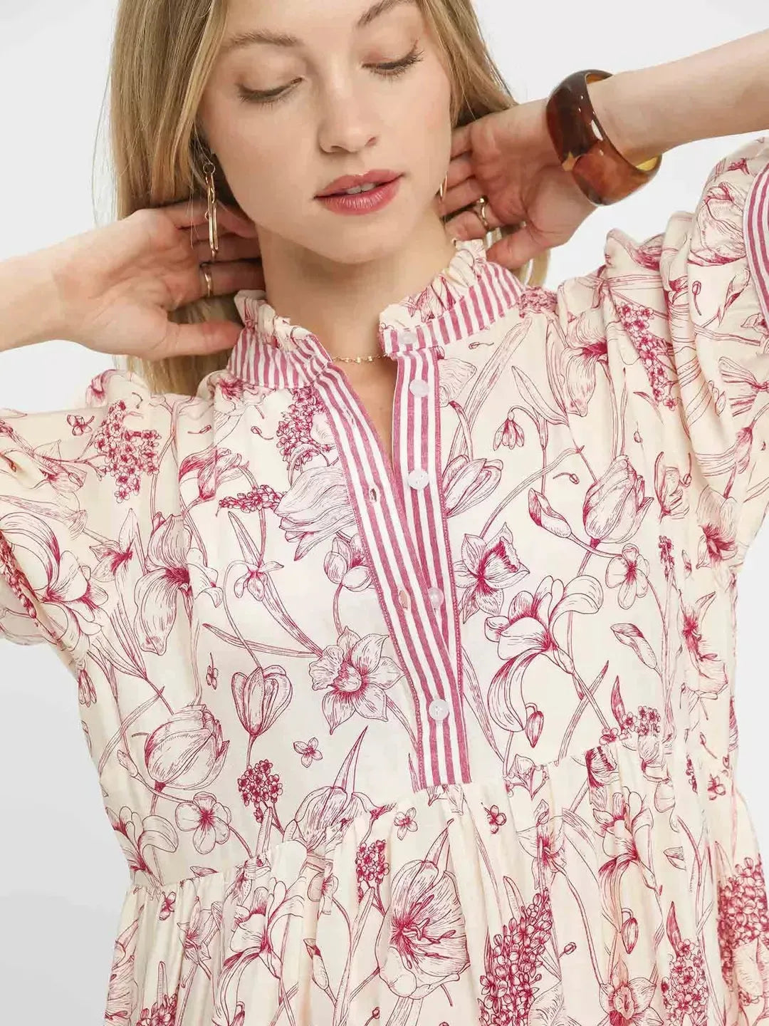 Umgee Rosy Reverie Floral Tiered Midi Dress with Ruffle Trim
