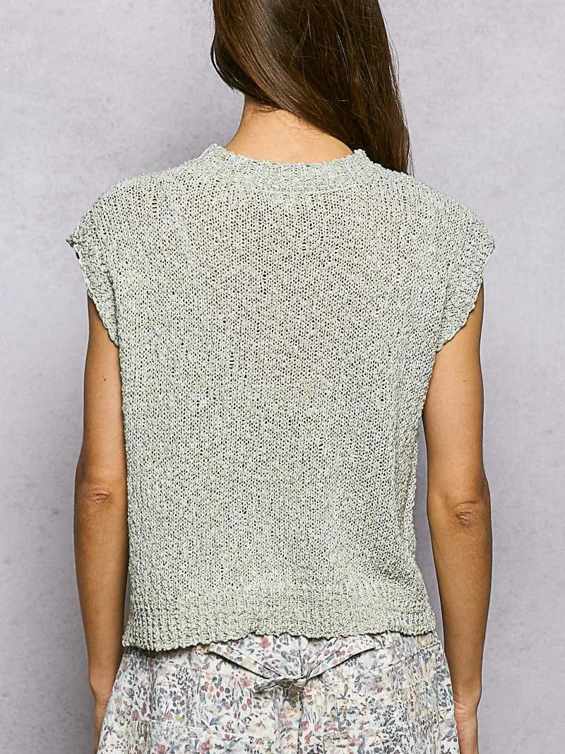 POL Sweet Sage Round Neck Popcorn Knit Top with Star Motif