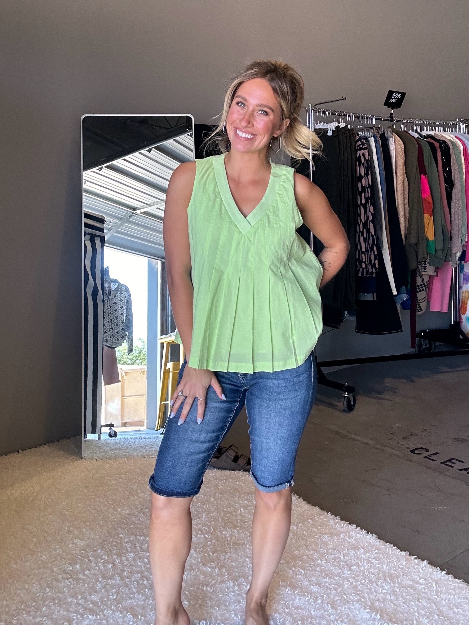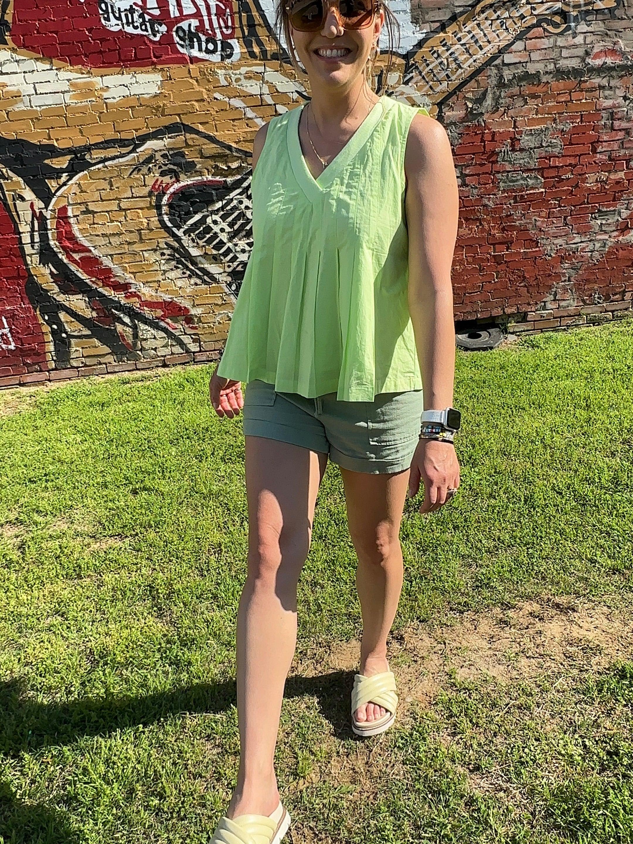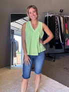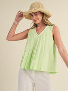 Be the apple of everyone's eye in this flirty, fun, and flared babydoll tank top! Featuring a ribbed knit V neckline and delicate pintuck and pleated details, this top will have you feeling confident and stylish. Perfect for a day out or a night on the town, this lined babydoll silhouette is a must-have for your wardrobe!