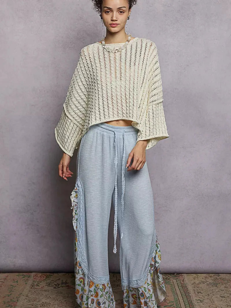 Shine with effortless style in the Skyline Shimmer Top by POL. Designed with a round neckline and flattering 3/4 sleeves, this cropped sweater top features an open-knit fabric accented with subtle shiny detail in a pointed solid pattern. Lightweight and modern, it adds just the right touch of sparkle to elevate your everyday outfits. Pair it with high-rise denim, trousers, or layered looks for a chic, statement-making ensemble that transitions easily from day to night.