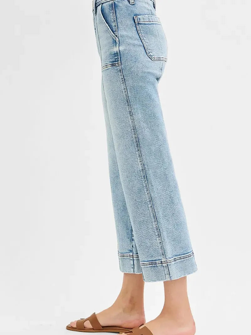 Risen Moonwashed Blue High Rise Crop Wide Leg Jeans