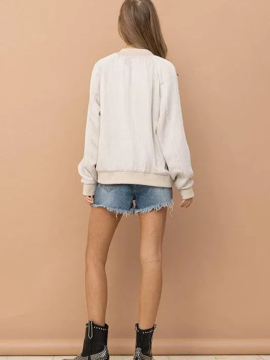 Whether you're looking for Champagne or Paisley vibes, this reversible satin bomber jacket’s got you covered. Flip it over, and you can take your look from day to night in a snap! So, when you’re in the mood for a little bit of both, you know it's time to pull out the Champagne and Paisley Too.