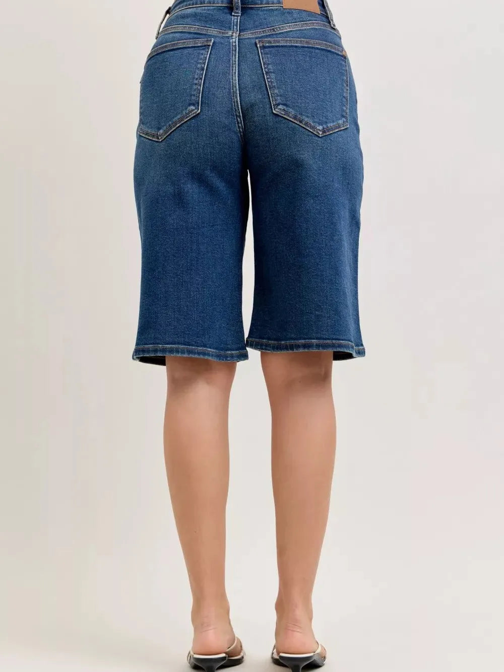 The Dark Horizon High Rise Bermuda Denim Shorts by Judy Blue in Dark Wash offers a flattering high-rise fit and Bermuda-length coverage, blending effortless edge with comfort. Crafted from soft, lived-in denim with stretch, these shorts move with you from casual days to chic evenings. The rich dark wash pairs perfectly with tees, tanks, or blouses, making these Bermuda denim shorts a versatile and timeless summer staple.
