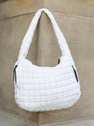 Soft, sporty, and effortlessly cool — the Aili’s Corner Taylor Marshmallow Mist Quilted Puffer Tote is your go-everywhere bag with a playful, modern twist. Crafted from lightweight puffer nylon with a cozy, cloud-like texture, this tote blends function and fashion with ease.