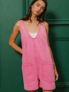 BiBi Patch Me If You Can Vintage Denim Shortall with Pockets in Pink