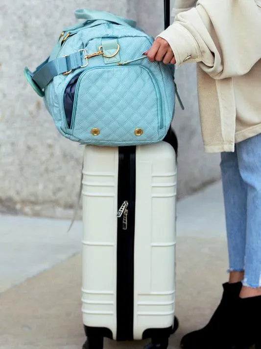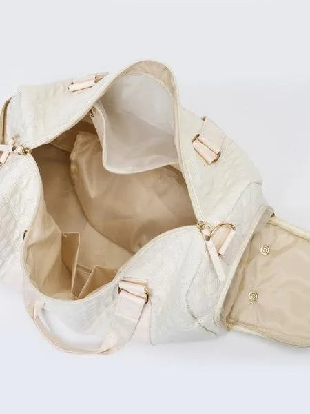 The thoughtfully quilted silhouette offers both structure and softness, while a removable, adjustable, and padded shoulder strap ensures comfortable carrying, no matter how far your journey takes you. Practicality meets style with an interior waterproof zip pocket, two small open side pockets, and a dedicated zip shoe compartment to keep your essentials organized and protected.