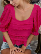 Pink Daydream Square Neck Crochet Top with Puff Sleeves