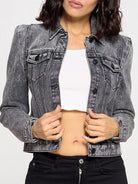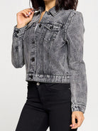 Nothing says "I was born sassy" like this puff-sleeve denim jacket! You'll look fly and fierce with its ash-wash black denim fabric and classic jean jacket style. How sassy!